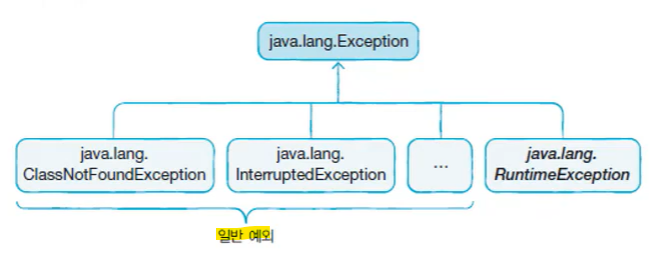 예외는 두 가지 종류가 있다. 하나는 일반 예외이고, 다른 하나는 실행 예외 이다.