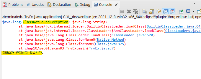 Class.forName("java.leng.String2");// 해당 파일 존재하지 않음