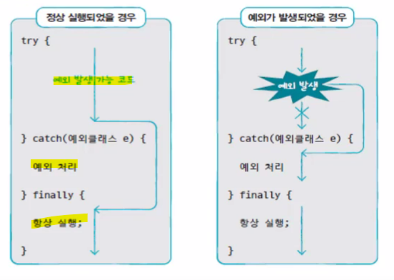 finally 블록은 생략 가능, 예외 발생 여부와 상관없이 항상 실행할 내용이 있을 경우에만 작성