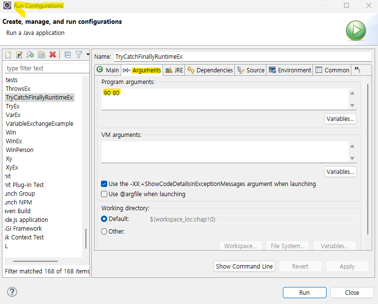 Run => Run Configurations => Arguments => Program arguments => 입력