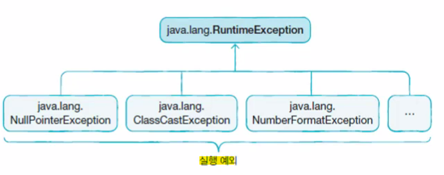 - 실행 예외 : 컴파일러 넌 체크 예외라고도 하는데, 컴파일러가 예외 처ㅣ를 강제하지 않는 것