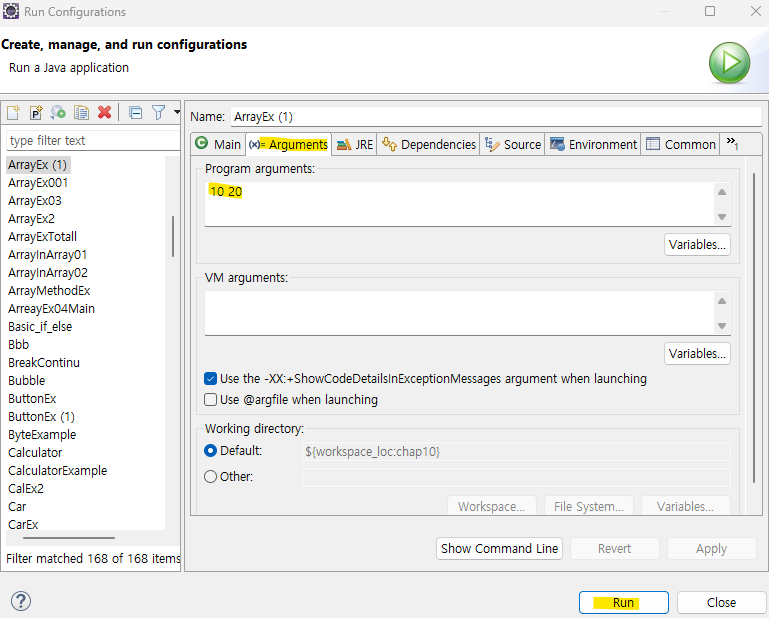 java -p . -m chap10/sec01.exam01.ArrayEx 가나다