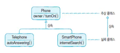 가질 수 있다. 예) Phone이라는 추상 클래스에 소유자인 owner 필드와 turnOn() 메소드를 선언하고,